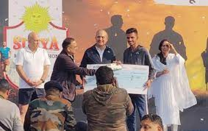 भोपाल। ‘सूर्यमान रहो गतिमान रहो’ के जयघोष के साथ तीन हजार लोगों ने सूर्या हाफ मैराथन में दौड़ लगाई। भारतीय सेना की मध्य कमान मुख्यालय जबलपुर और मध्य प्रदेश टूरिज्म बोर्ड (एमपीटीबी) के संयुक्त तत्वावधान में रविवार को प्रदेश की सांस्कृतिक राजधानी जबलपुर में हाफ मैराथान का आयोजन किया गया। सूर्यमान रहो गतिमान रहो थीम पर हुई मैराथम तीन श्रेणीयों 21 किलोमीटर, 10 किमी, एवं 5 किमी दौड़ की शुरुआत कोबरा ग्राउंड हुई। मुख्य आयोजन स्थल कोबरा स्पोर्टस कॉम्प्लेक्स में टूरिज्म बोर्ड द्वारा प्रदेश के पर्यटन स्थलों पर आधारित प्रदर्शनी लगाई गई। यहां पर धावकों व आगंतुकों ने र्व्चुअल रूम डिवाइस के माध्यम से पर्यटन स्थलों को 360 डिग्री से निहार कर आनंद लिया।