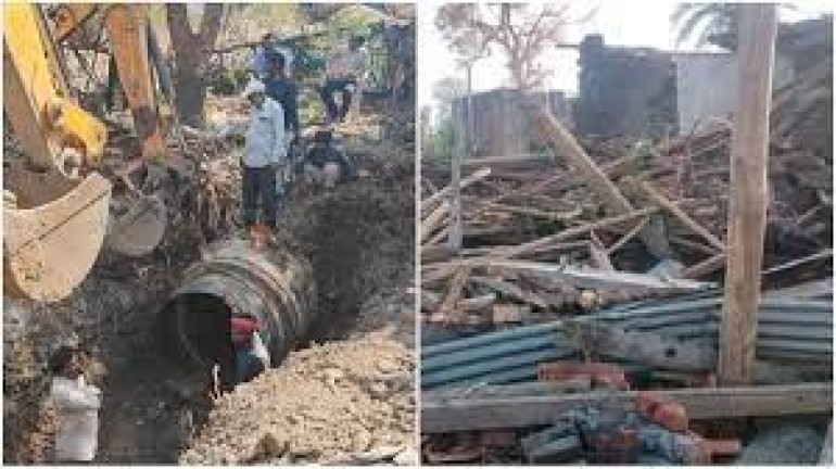 48 साल पुरानी पाइप लाइन में विस्फोट, 3 घर ढहे