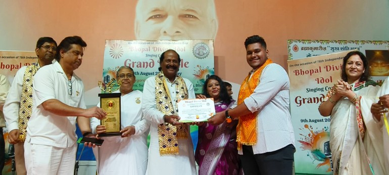 वर्तमान समय में युवा पीढ़ी का संगीत से जुड़ना ही बड़ी बात है, फिर वह चाहे सुगम हो या शास्त्रीय संगीत। मैं ब्रह्माकुमारीज़ सुख शांति भवन को धन्यवाद देना चाहूंगा कि उन्होंने ऐसे कार्यक्रम का आयोजन इतने सुंदर स्थान पर किया। यहां के पवित्र वाइब्रेशन्स तन और मन को ऐसा अनुभव कराते हैं जिससे एक कलाकार की सृजनात्मकता बढ़ जाती है और वह अपनी कला को और बेहतर ढंग से प्रस्तुत करने लगता है। संगीत एक ऐसा माध्यम है जिसके द्वारा न केवल हम स्वयं लेकिन अनेकों को तनावमुक्ति का अनुभव कराते हैं। मैं आयोजकों को विशेष रूप से बधाई इसलिए भी दूंगा कि उन्होंने युवा शक्ति को एक मंच प्रदान किया जिसके माध्यम से उनकी शक्तियां सकारात्मक दिशा में कार्यरत हो रही है। यह कहना था भोपाल तथा मध्य प्रदेश का नाम देश-विदेश में पहुंचाने वाले, संगीत के क्षेत्र में ध्रुपद गुरु के नाम से प्रसिद्ध तथा भारत सरकार द्वारा पद्मश्री से सम्मानित पंडित श्री उमाकांत गुंदेचा जी का। और अवसर था नीलबड़ स्थित ब्रह्माकुमारीज़ सुख शांति भवन के अनुभूति सभागार में आयोजित भोपाल डिवाइन आइडल के ग्रैंड फिनाले का। यह संगीत स्पर्धा तीन चरणों में आयोजित की गई थी। प्रथम चरण में 180 प्रतिभागियों ने देशभक्ति इस विषय पर अपने गीत प्रस्तुत किए थे। इसमें से 80 प्रतिभागी अगले चरण के लिए चुने गए जहां पर उन्होंने मूल्य आधारित एवं प्रेरणादाई गीत प्रस्तुत किये। यह दोनों ही चरण ऑनलाइन हुए और अंतिम चरण में कुल 16 प्रतिभागियों का चयन हुआ जिन्होंने भक्ति संगीत पर आधारित गीतों की प्रस्तुति दी। एक से बढ़कर एक ऐसे गीतों की स्वर लहरियों से अनुभूति सभागार गुंजायमान हो रहा था। मां सरस्वती की वंदना से शुरू होकर मधुबन में राधिका नाचे रे, मुझे अपनी शरण में ले लो राम से लेकर सजा दो घर को गुलशन सा, मेरे घर राम आएंगे, सत्यम शिवम सुंदरम, देवा श्री गणेशा आदि सुमधुर गीतों की झड़ी लग गई थी। इन गीतों के मध्य में सबको भाव विभोर करने वाली प्रस्तुति थी तान्या शर्मा की। आंखों से देखने में असमर्थ इस युवा गायिका ने जब ओ पालनहारे, निर्गुण ओ न्यारे गीत गाया तो सबकी आंखें छलक उठी। इस प्रतियोगिता में प्रथम स्थान एंजेलो गेराल्ड, द्वितीय स्थान संकल्प यदुवंशी, तृतीय स्थान तान्या शर्मा, चतुर्थ स्थान ओंकार समुद्रे तथा पांचवा स्थान ऋषिका प्रजापति एवं डॉ नूपुर मालवीय इनको मिला।