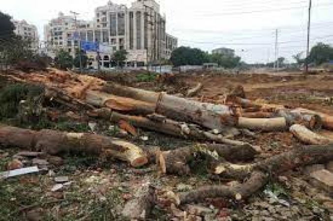 जाली को हटाकर भी अंदर के पेड़ काटे जा रहे हैं