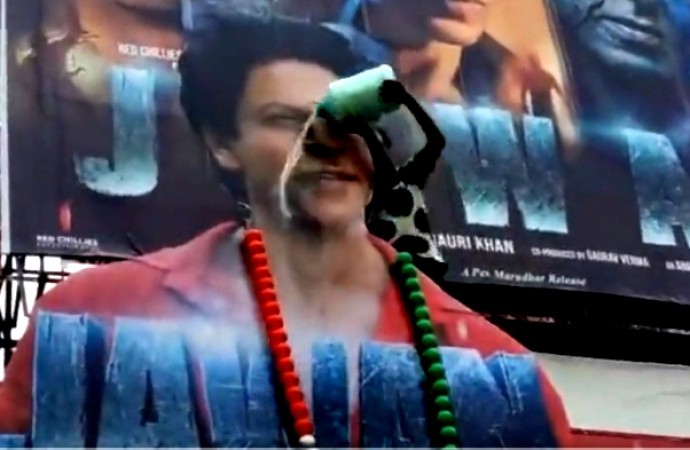 हैदराबाद के रामकृष्ण थिएटर में प्रशंसकों ने शाहरुख खान के कट-आउट पर दूध चढ़ाया