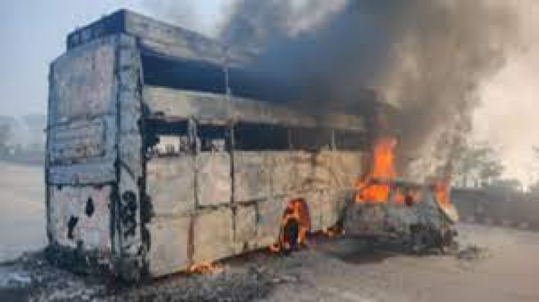 मथुरा । मथुरा जिले में यमुना एक्सप्रेस-वे पर सोमवार तड़के एक बड़ा हादसा हो गया। जहां आगरा की तरफ से नोएडा जा रही एक प्राइवेट बस का टायर अचानक पंचर हो गया। जिससे बस अनियंत्रित होकर सड़क पर तिरछी खड़ी हो गई। इसी दौरान पीछे से आ रही एक तेज रफ्तार कार बस में जा घुसी। तेज टक्कर के बाद दोनों वाहनों में आग लग गई। हादसे में 5 लोगों की जिंदा जलकर मौत के मुँह में समा गए।