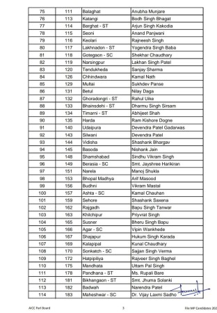 कांग्रेस ने 144 प्रत्याशियों की सूची घोषित की