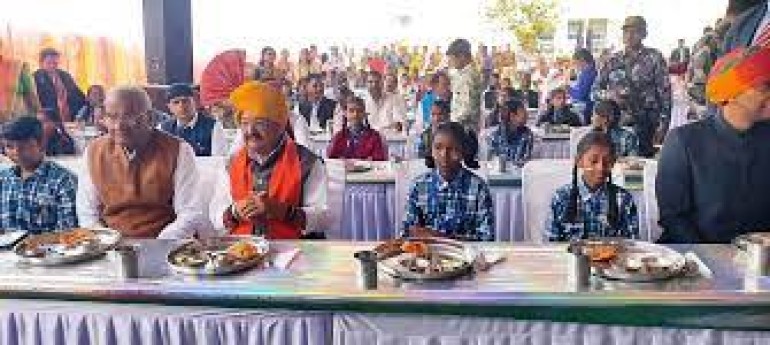 भोपाल । प्रदेश के नगरीय विकास एवं आवास मंत्री कैलाश विजयवर्गीय गणतंत्र दिवस के मुख्य समारोह के पश्चात मूसाखेड़ी स्थित शासकीय सीएम राइज स्कूल पहुंचे। यहां उन्होंने स्कूली बच्चों के साथ बैठकर भोजन भी किया। इंदौर जिले में गणतंत्र दिवस के अवसर पर स्कूली बच्चों को मध्यान्ह भोजन के तहत आलू-छोला, पूरी, खीर, लड्डू आदि परोसा गया।