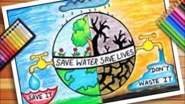 जल संरक्षण के संदेश के साथ बच्चों ने उकेरी रंगों की दुनिया