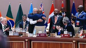 नई दिल्ली इस समय भारत में जी-20 शिखर सम्मेलन शुरू हो चुका है। पीएम नरेन्द्र मोदी शिखर सम्मेलन में आए मेहमारों का स्वागत करने में जुटे हुए हैं। हाल ही में यूनाइटेड किंगडम के पीएम ऋषि सुनक दिल्ली के प्रगति मैदान में जी-20 शिखर सम्मेलन के आयोजन स्थल भारत मंडपम में पहुंच चुके हैं।
