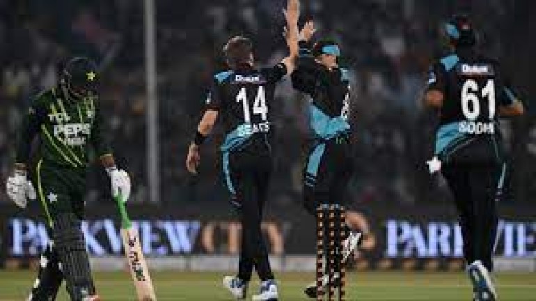 लाहौर । न्यूजीलैंड क्रिकेट टीम ने पाकिस्तान को चौथे टी20 क्रिकेट मैच में चार रन से हराकर पांच मैचों की सीरीज में 2-1 की बढ़त हासिल कर ली है। कीवी टीम ने इस मैच में पहले बल्लेबाजी करते हुए सलामी बल्लेबाज टिम रॉबिनसन के अर्धशतक के बल पर सात विकेट पर 178 रन बनाए। इसके बाद लक्ष्य का पीछा करते हुए पाकिस्तान की टीम 174 रनों पर ही आउट हो गयी।