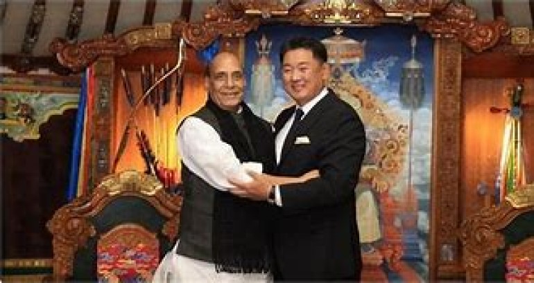 केंद्रीय रक्षा मंत्री राजनाथ सिंह ने मंगोलिया के राष्ट्रपति यू. खुरेलसुख सहित देश के उच्च नेतृत्व के साथ मंगलवार को मुलाकात कर दोनों देशों के बहुआयामी रणनीतिक संबंधों को और गहरा करने के तरीकों पर चर्चा की। राजनाथ मंगोलिया तथा जापान की अपनी पांच दिवसीय यात्रा पर हैं। इस यात्रा का मकसद क्षेत्रीय सुरक्षा के हालात और वैश्विक भू-राजनीति में उथलपुथल के बीच दोनों देशों के साथ भारत के रणनीतिक व रक्षा संबंधों का विस्तार करना है। यह किसी भारतीय रक्षा मंत्री द्वारा इस पूर्वी एशियाई देश की पहली यात्रा होगी।